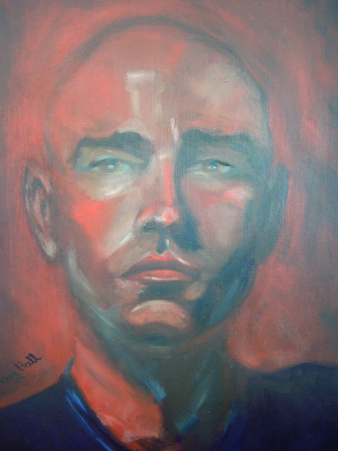 This portrait was done in art class, conducted by Alan Somerville at RAS North Sydney. Oil on canvas using big brushes.