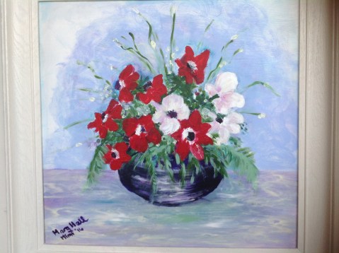 A quick flower arrangement study attempting to apply acrylic thinly to resemble watercolour.